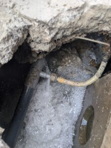 コンクリートを壊して 給水管を確認した所